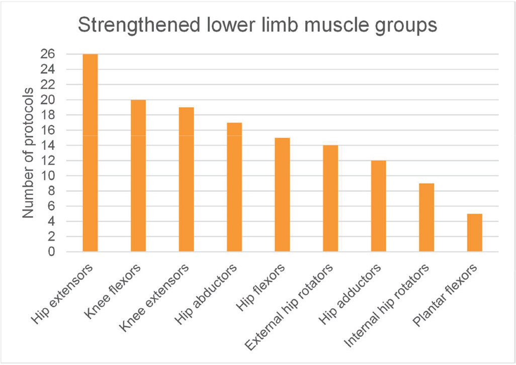 FIGURE 3 -. Lower limb muscle groups most cited in the 26 strengthening protocols.