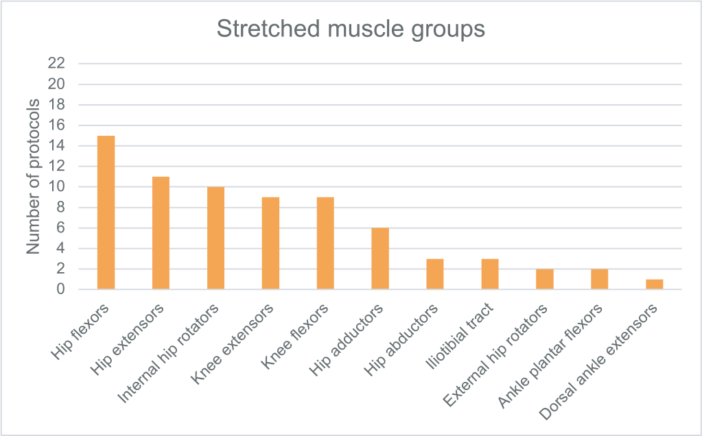 FIGURE 4 -. Lower limb muscle groups cited in 22 stretching protocols.