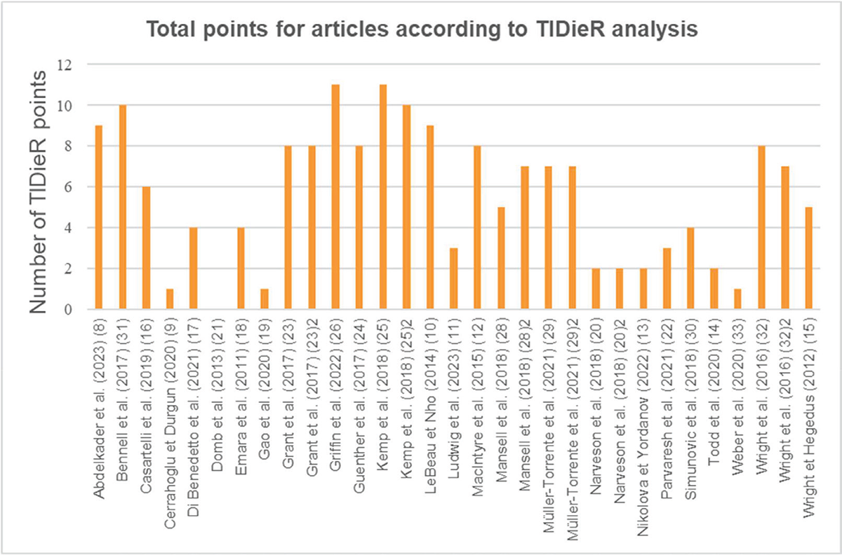 FIGURE 5 -. Number of total points for articles following TIDieR evaluation.