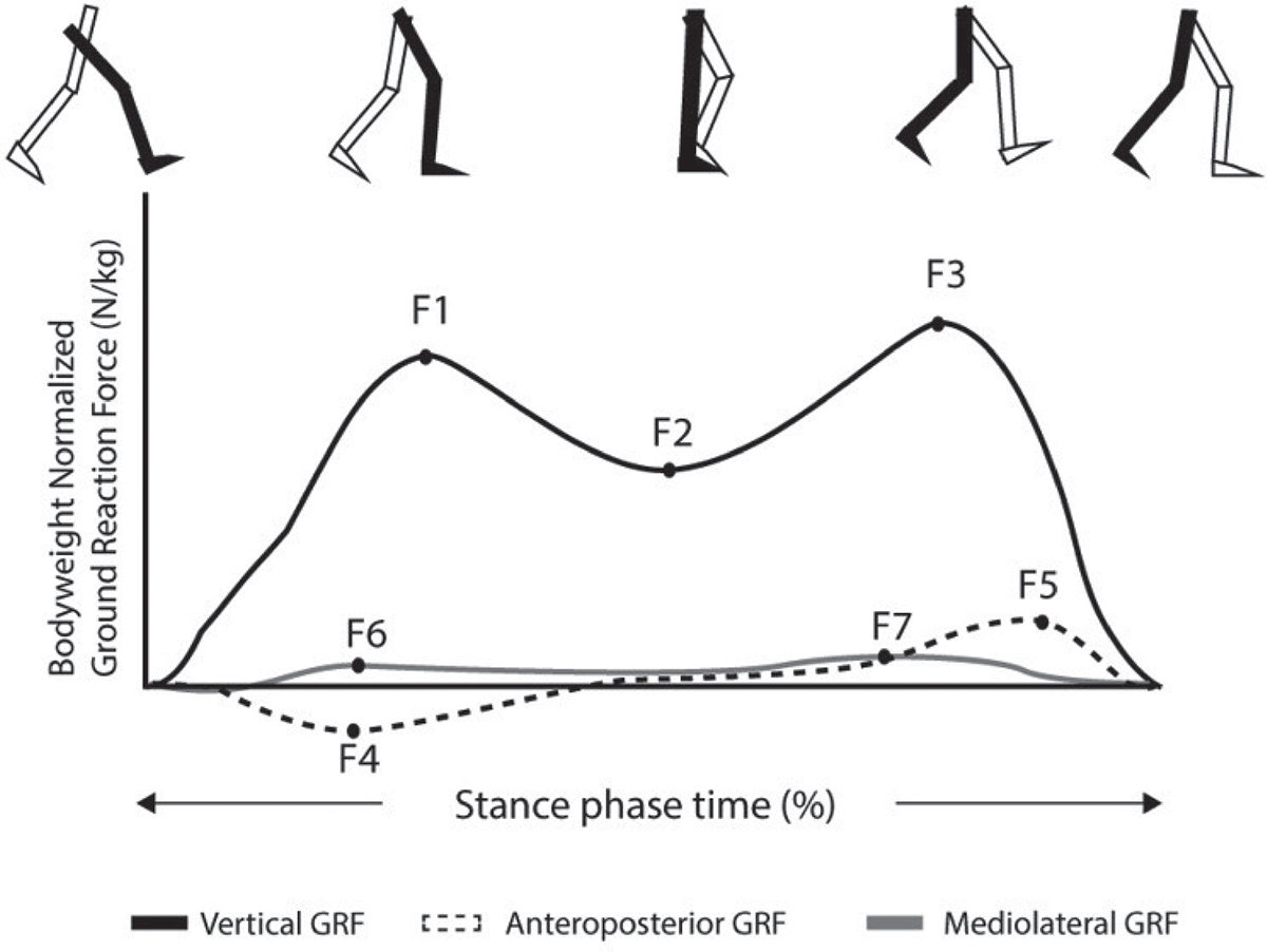 FIGURE 1-. Ground reaction force (GRF)-time variables during gait.